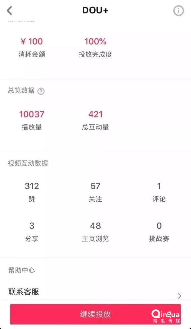 粉丝做到 700-1000 的账号,建议可以尝试投放 DOU+,单条视频投放预算一般控制在 300 左右:投 2-3 次 DOU+,每次 100 元。